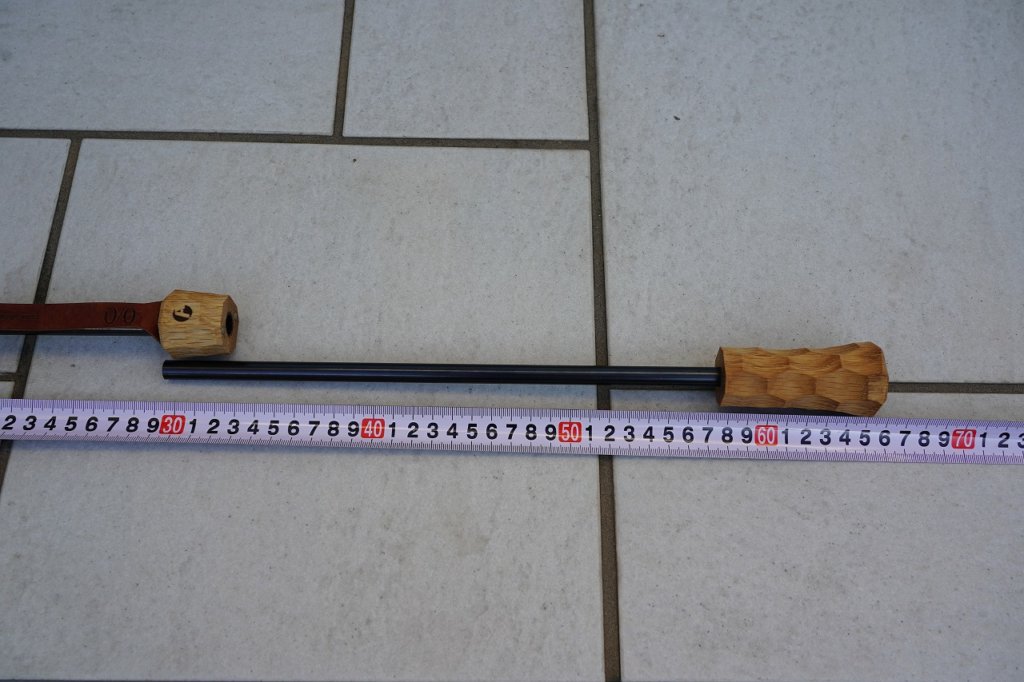 | 素材 | 本体=鉄,真鍮、グリップ=ナラ、革 |
