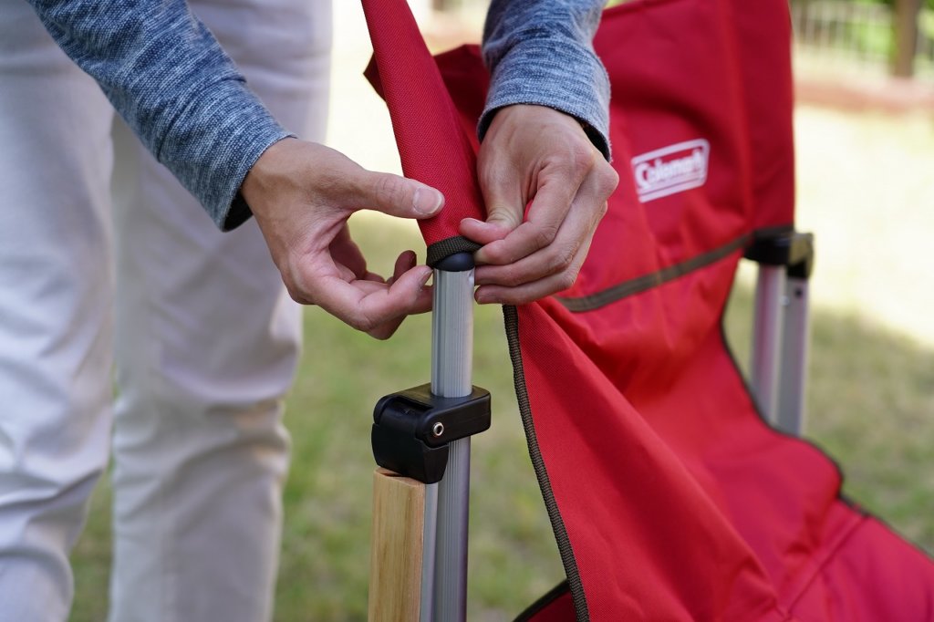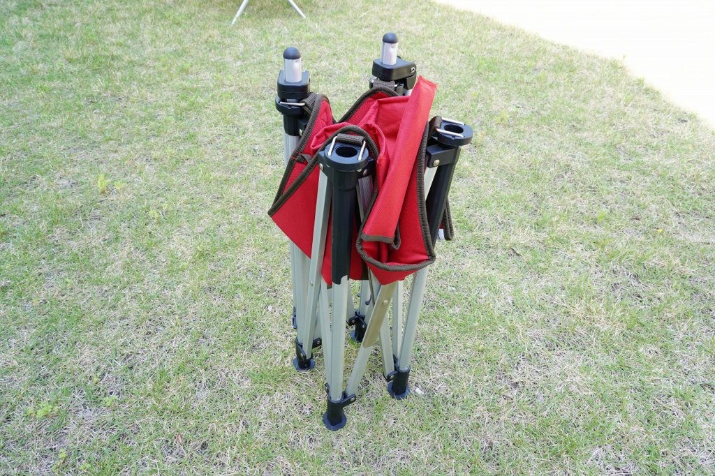 一般的なワンタッチで完成するアウトドアチェアとは違って、3ステップほどの作業が必要になるのはネックですが、そのぶん座った時の快適さや丈夫で安定したしっかり感があります。