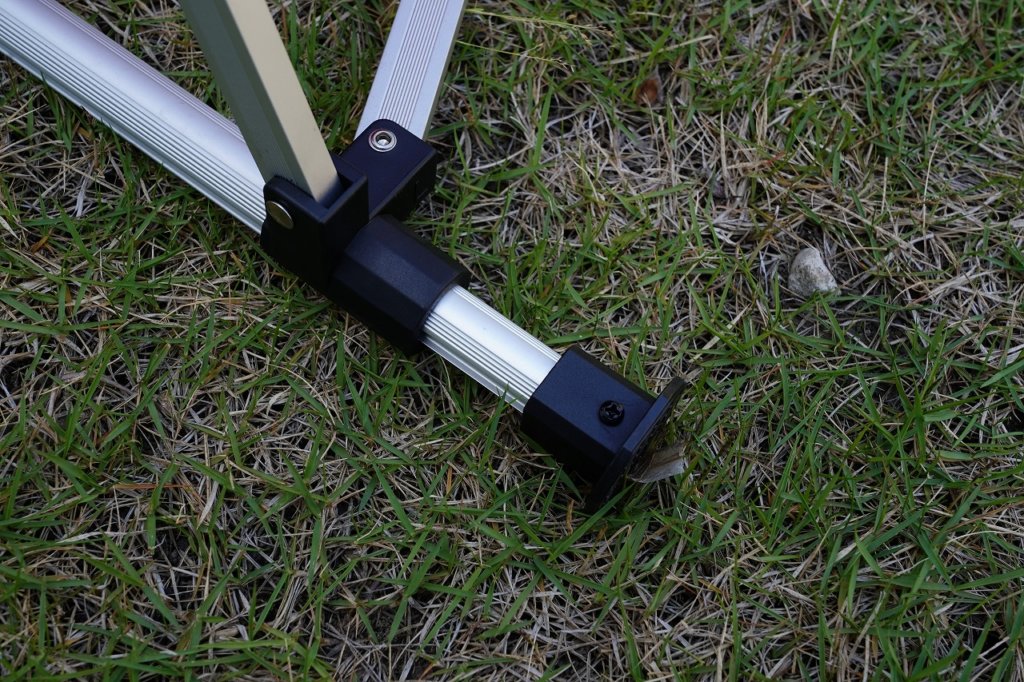 地面と接する脚は樹脂パーツで設置面積を大きくするようにしてあるので、柔らかい地面でもしっかりと設置させることもできそうです。
