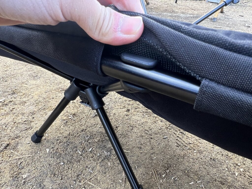 ロースタイルにするのはとても簡単です。メインフレームの脚を抜いてホルダーに留めておくだけ。ヘリノックスのコットワンのように別パーツじゃないアイディアは優秀です。