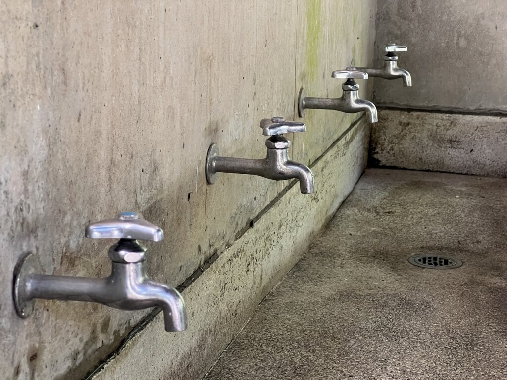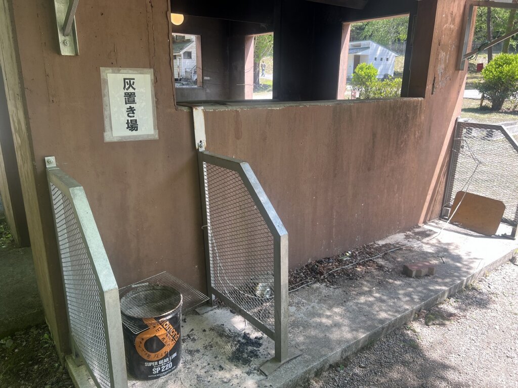 炊事棟脇にはキャンプで出た灰捨て場が完備されています。水道は合計8個の蛇口がありすべて冷水となっています。