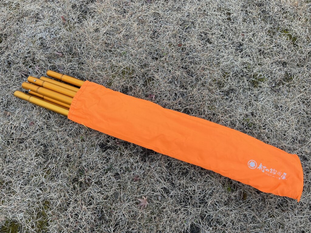 僕は今、キャンプで村の鍛冶屋『伸縮アルミタープポール』を使ってますがこれまでずっとケースは当初付属のナイロン袋を使ってました。