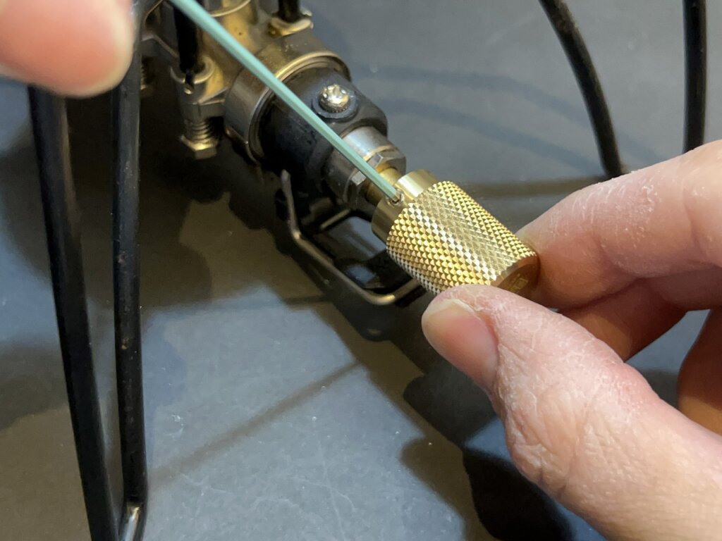 このイモネジをST-310のつまみが刺さっていた箇所に合わせて締め込みます。六角のサイズは1.5mmを使います。