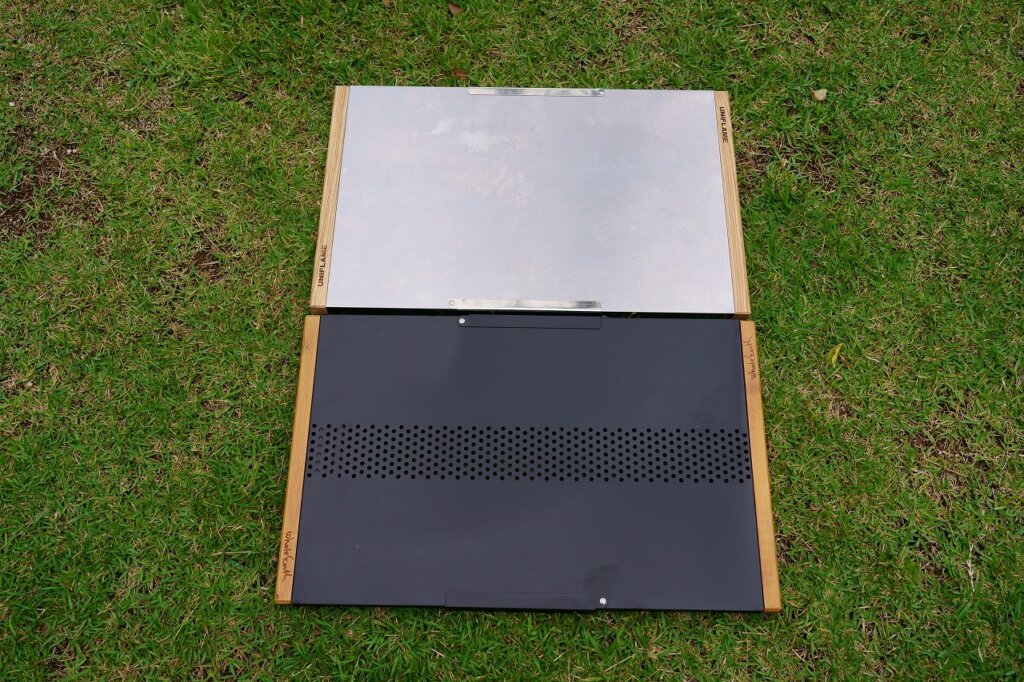 ホールアース製はスチール(鉄)に耐熱塗装をして錆びにくくしていますが、ユニフレームのほうはステンレスを使用しているのでより錆びにくくなっています。
